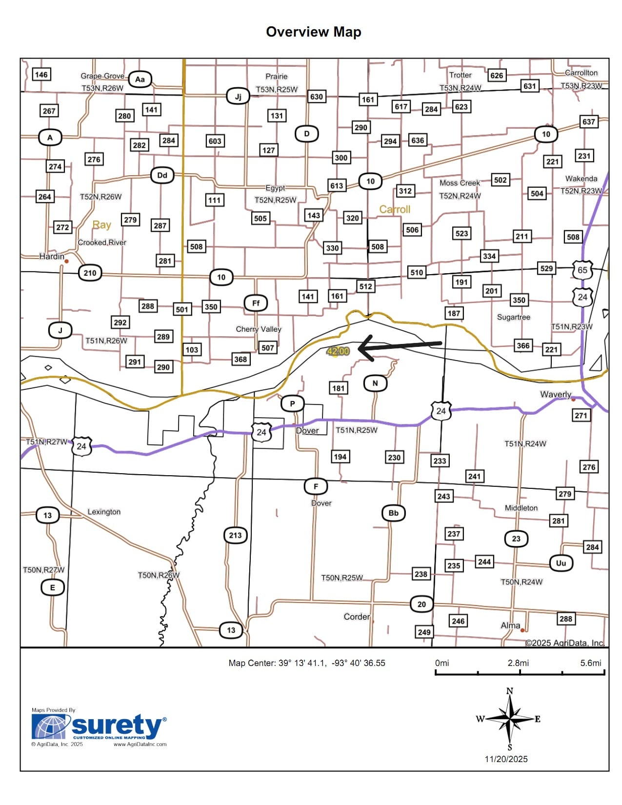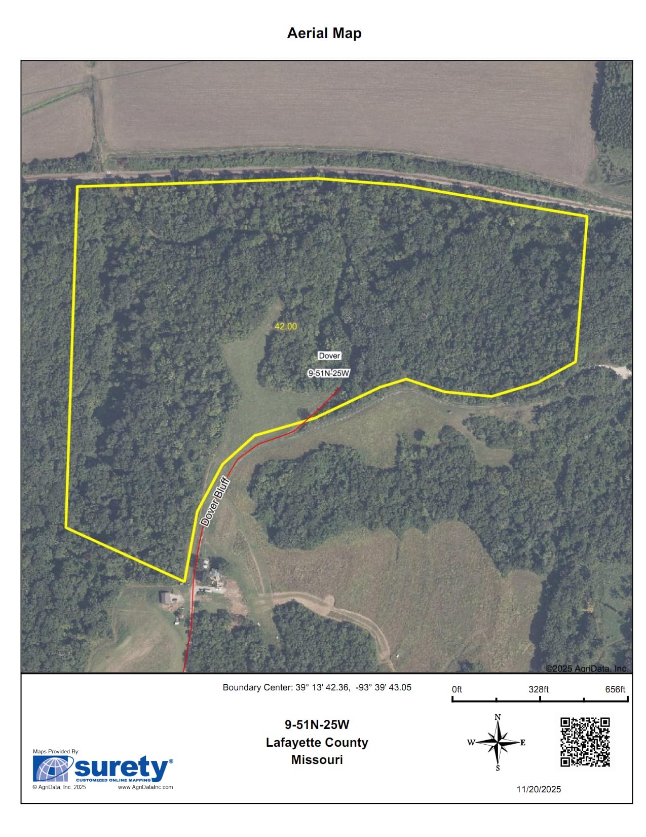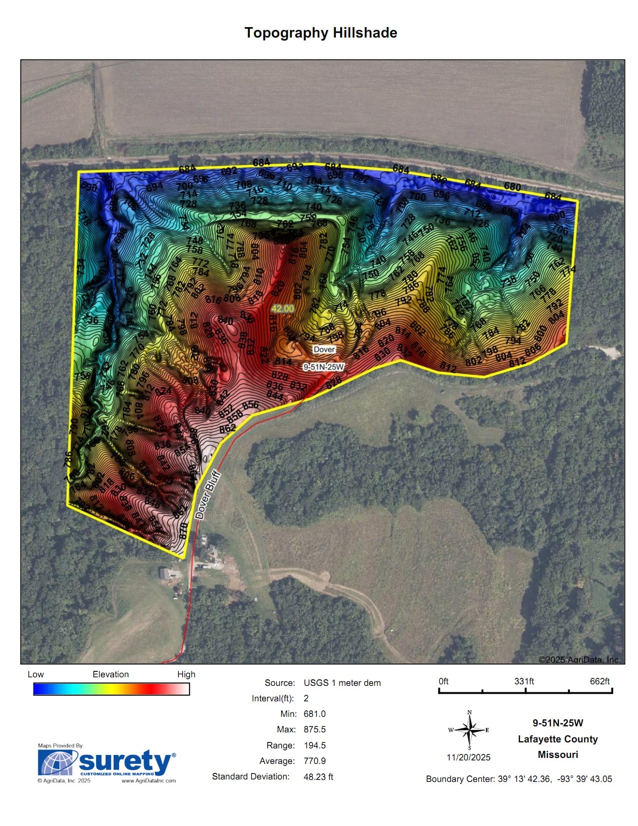 Located just north of Dover in Lafayette County, this exceptional property sits at the very end of a dead-end road—providing the peace, privacy, and separation from daily distractions that serious land buyers value most. To the east, the property directly borders the Big Muddy National Wildlife Refuge, ensuring permanently protected scenery, abundant wildlife movement, and a level of seclusion seldom found in today’s market.