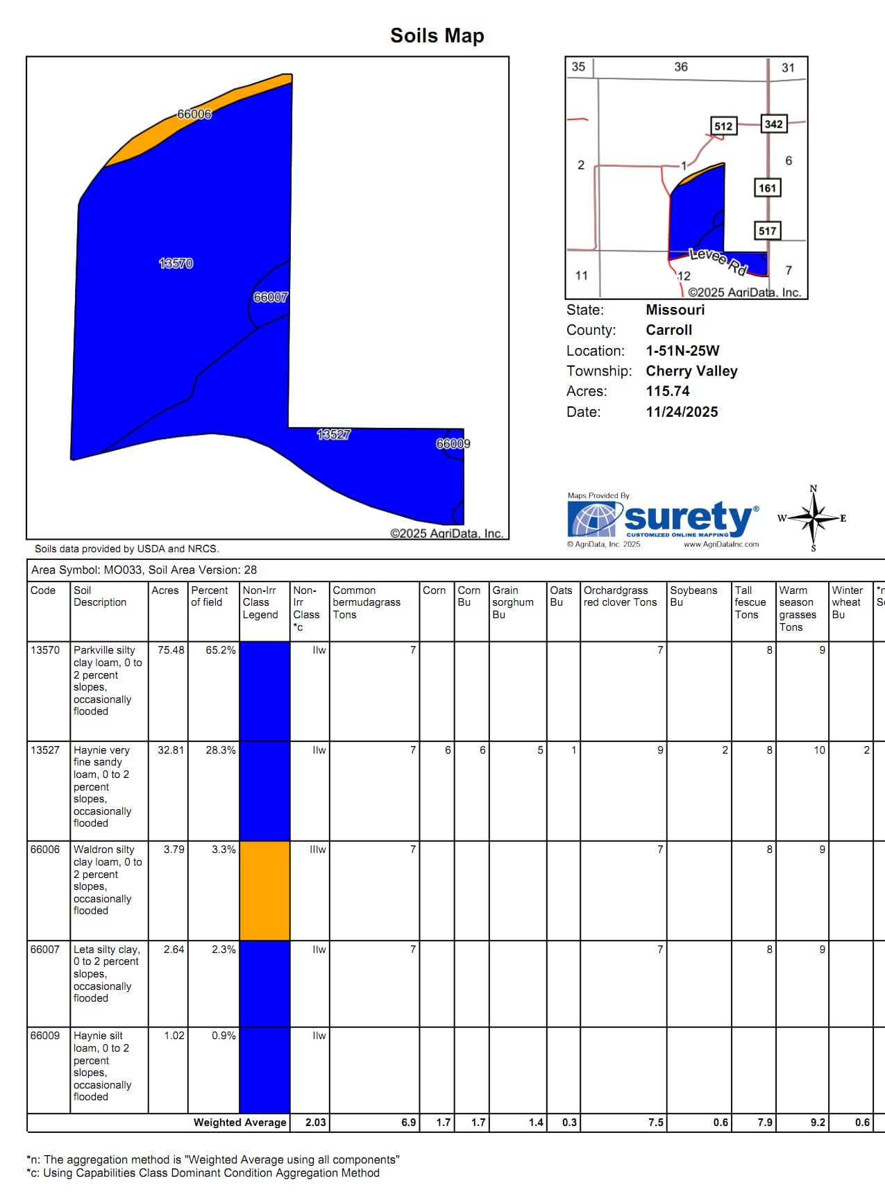 Soils: Primarily Class II Haynie, Parkville, Leta
