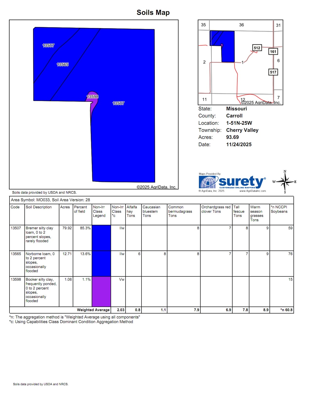 Soils: Predominantly Class II Bremer and Norborne