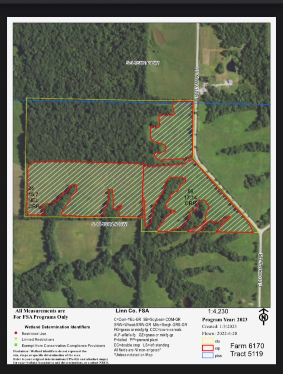 Land consists of 66 acres m/l, approx. 33 acres CRP, $3369 annual income, mowed lanes throughout farm, 1 small pond, food plots,