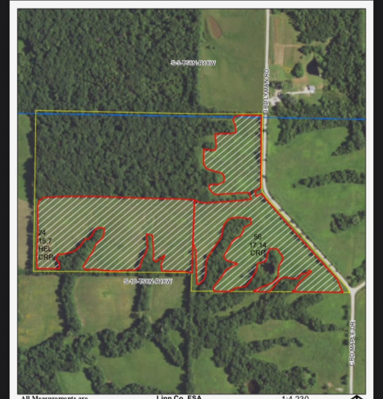 Nice Hunting/ recreational property with income. 66 acres with a mix of timber and CRP. Mowed trails through the CRP and timber allowing easy walking or trail riding opportunities. Come enjoy your own cabin with all utilities already in place.
