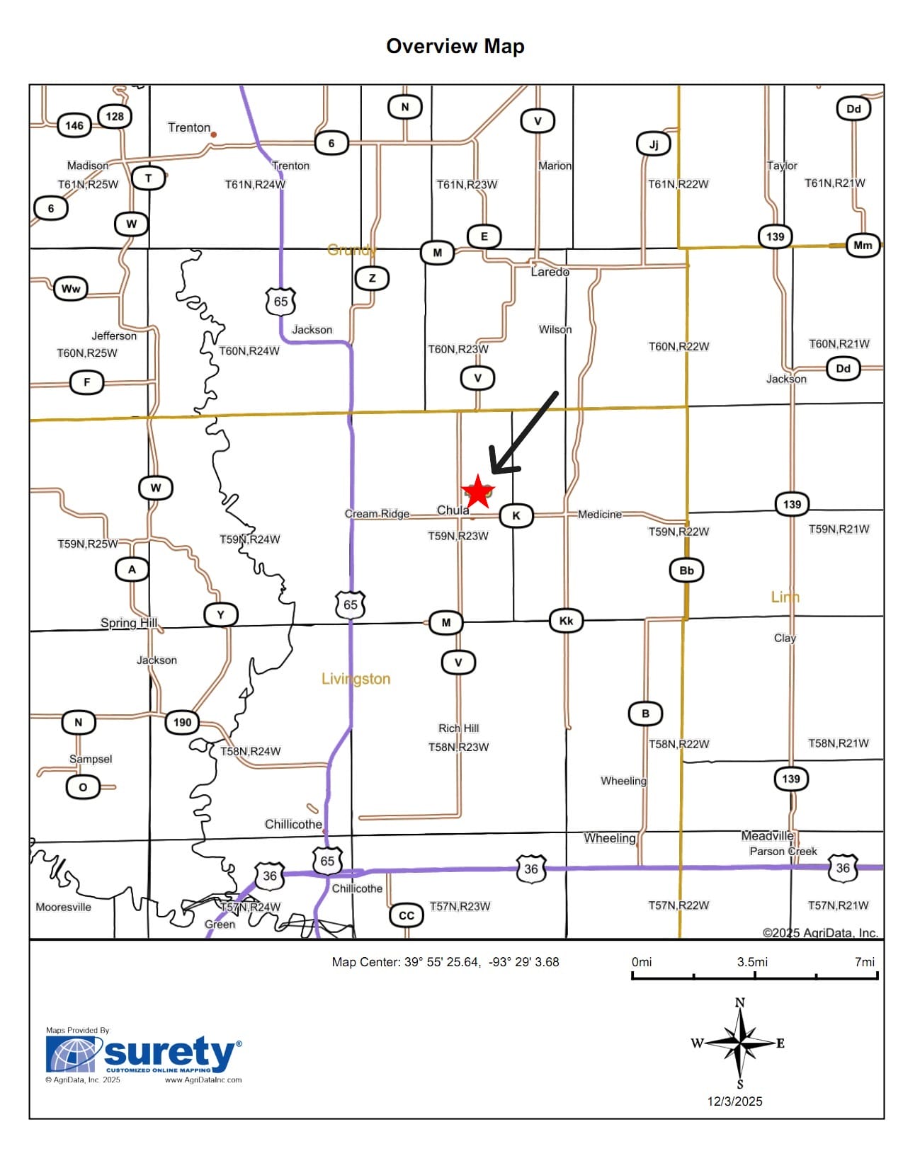Located at the end of a quiet dead-end road, just 3/4-mile northeast of Chula, MO, you’ll enjoy peaceful seclusion with almost zero road traffic while still being only 3/4 mile off pavement. The property offers stunning views overlooking the Medicine Creek bottoms, creating a beautiful backdrop for your future home or getaway.